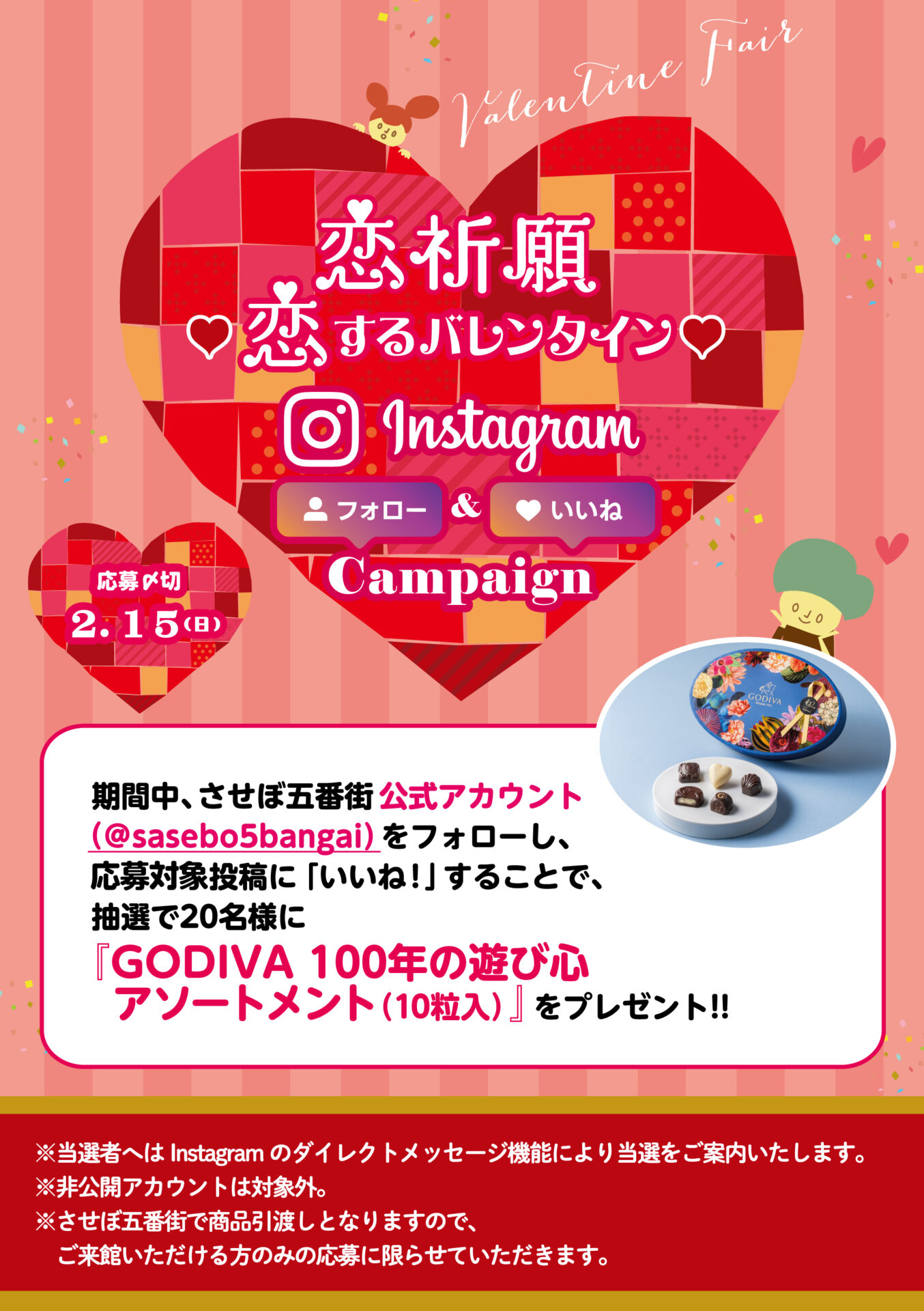 上記期間中、させぼ五番街公式Instagramアカウント(@sasebo5bangai)をフォローし、