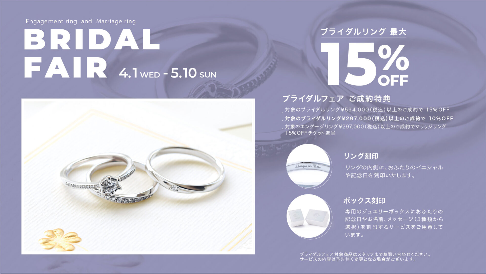 ・ブライダルリングをご成約で、最大15%OFF(※1)