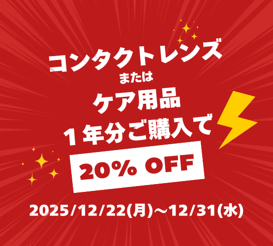 コンタクトレンズまたはケア用品を1年分ご購入で20%OFF!!
