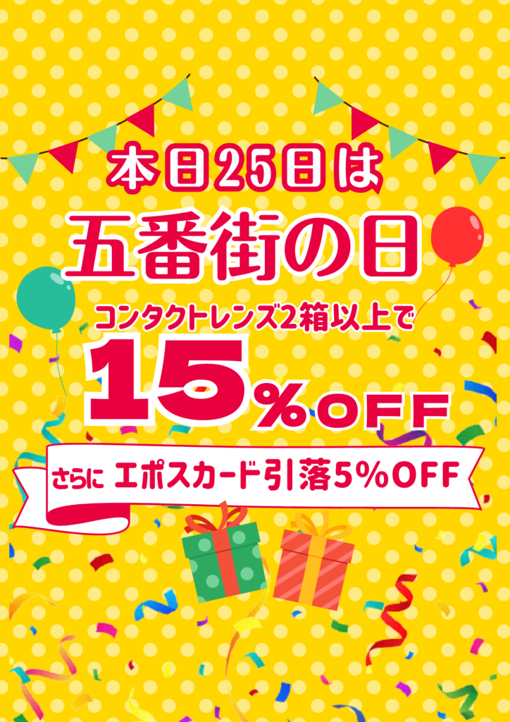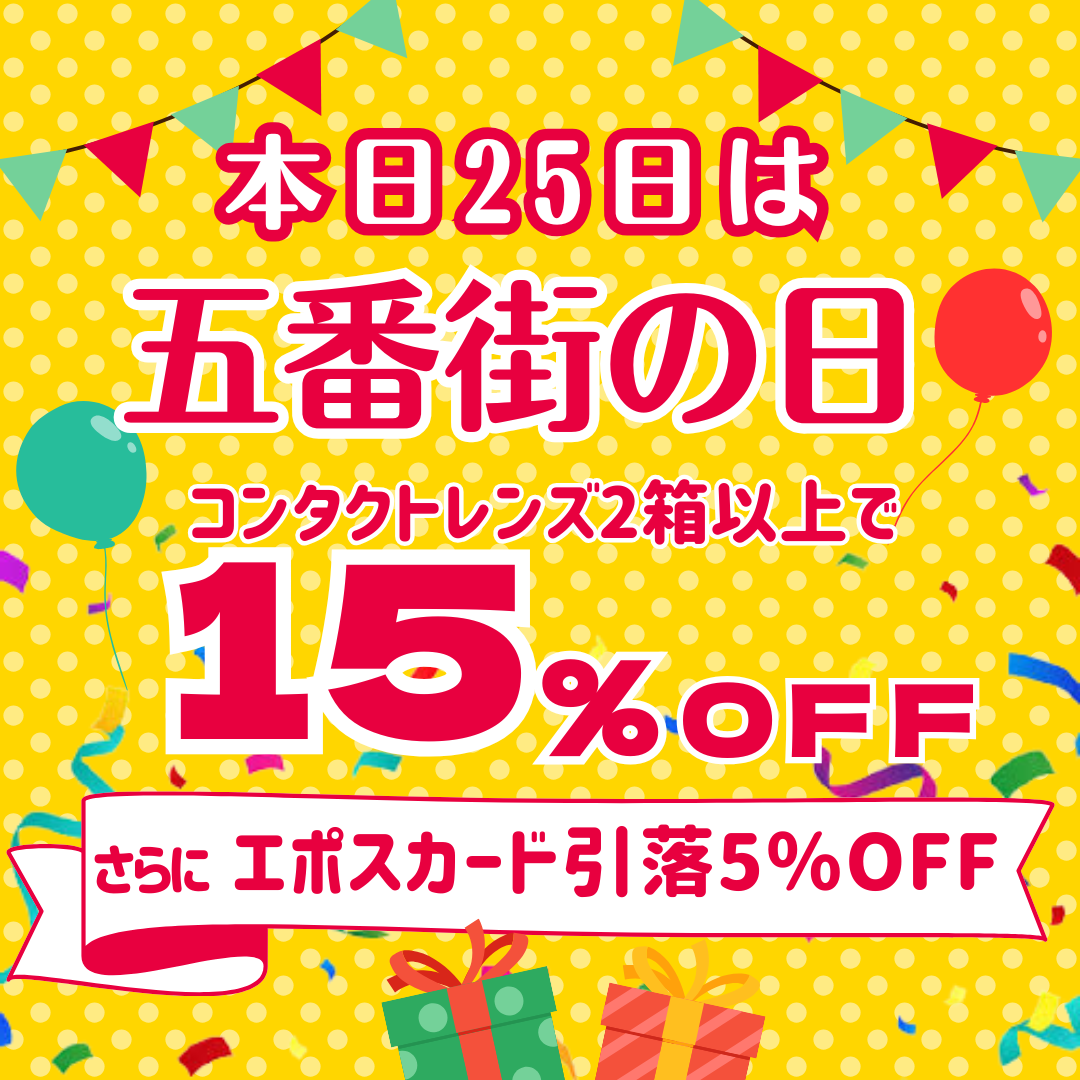本日25日はコンタクトレンズ2箱以上ご購入で15%OFF