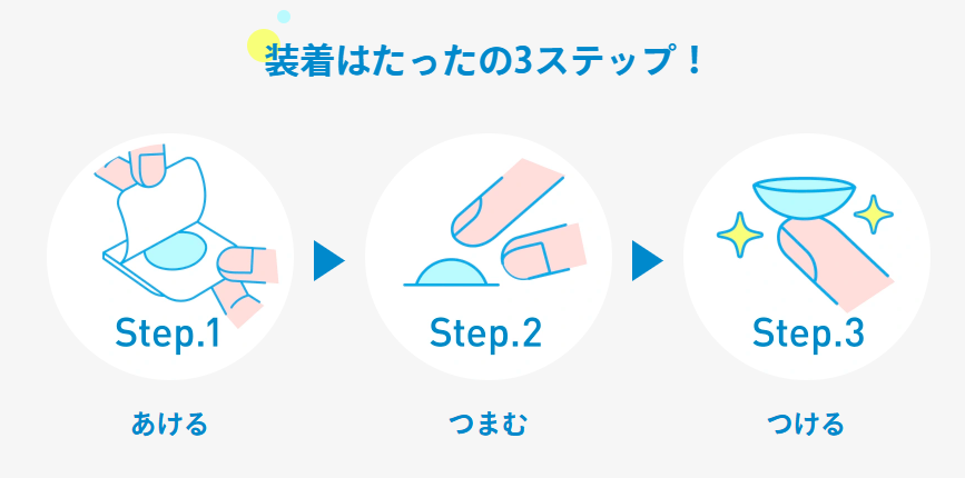 表裏の確認不要、目に触れる部分を指で触らずに装用できて快適なコンタクトレンズのことです。
