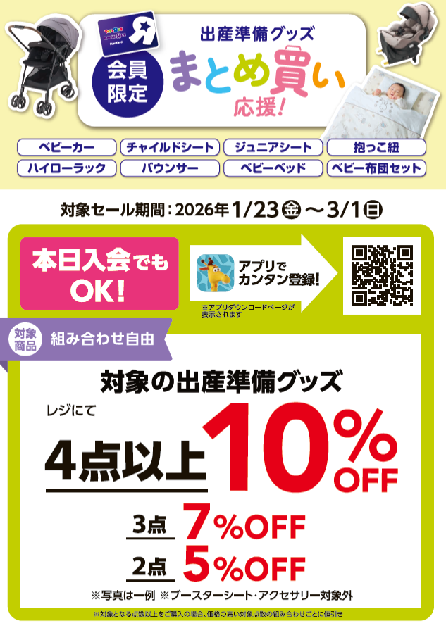 さらにポイントカード会員様限定で大型ベビー用品
