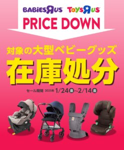 1/24より大型ベビーグッズの在庫処分セールを開始いたします。
