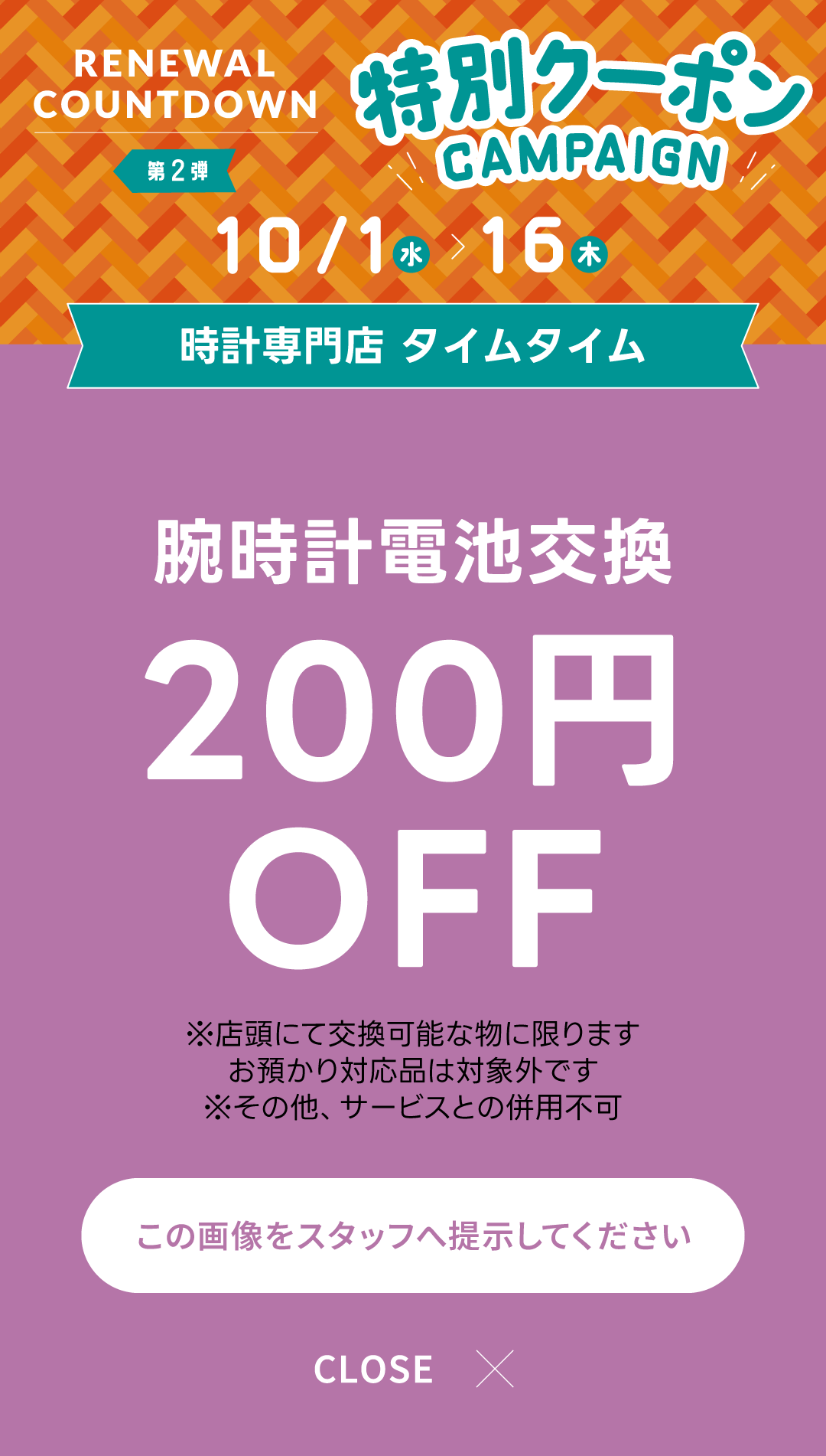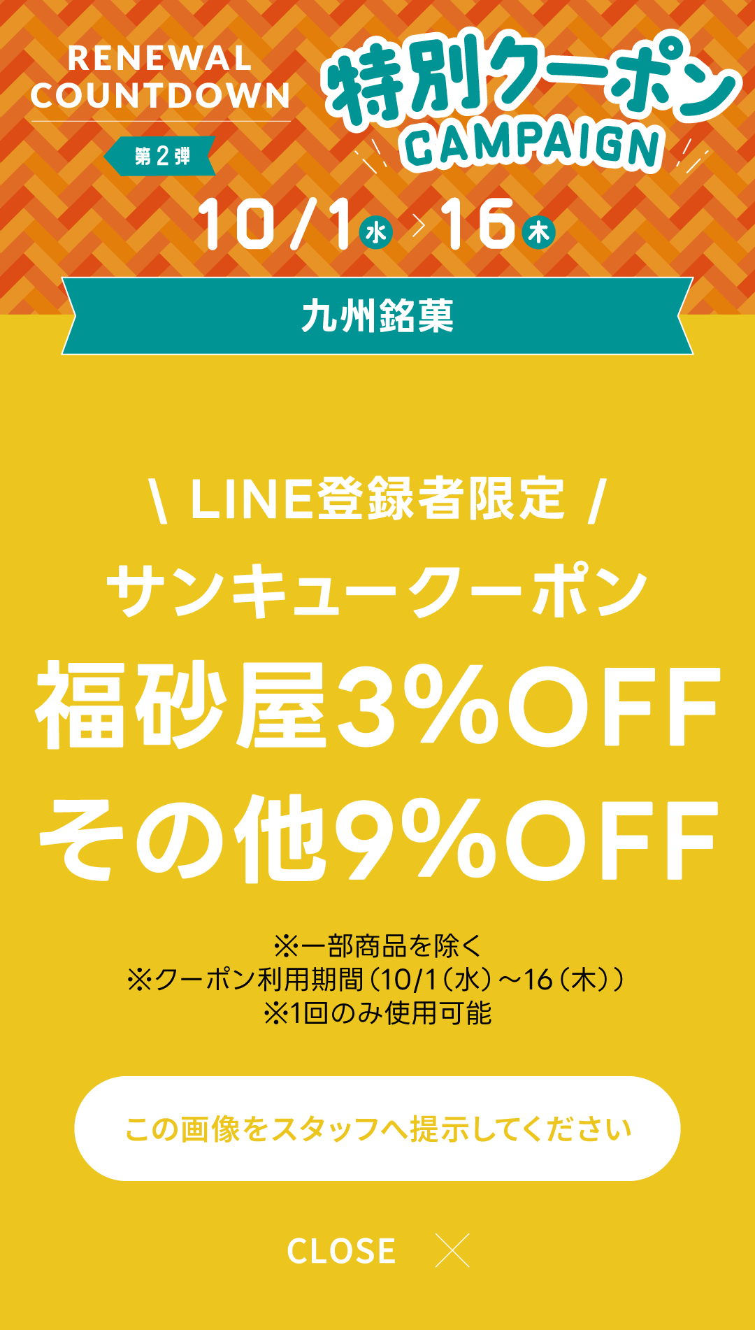 ご利用条件を確認のうえ、各店でクーポン画面をご提示ください。
